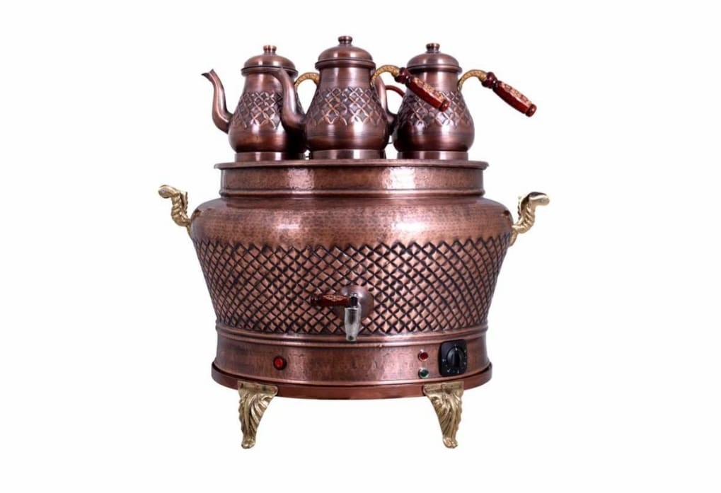 ANKA 3 Demlikli Eskitme Bakır Elektrikli Oval Tip Semaver