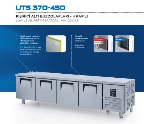 İCEİNOX UTS 370 CR PİŞİRİCİ ALTI BUZDOLAPLARI 4 KAPILI (-2 / +8 )